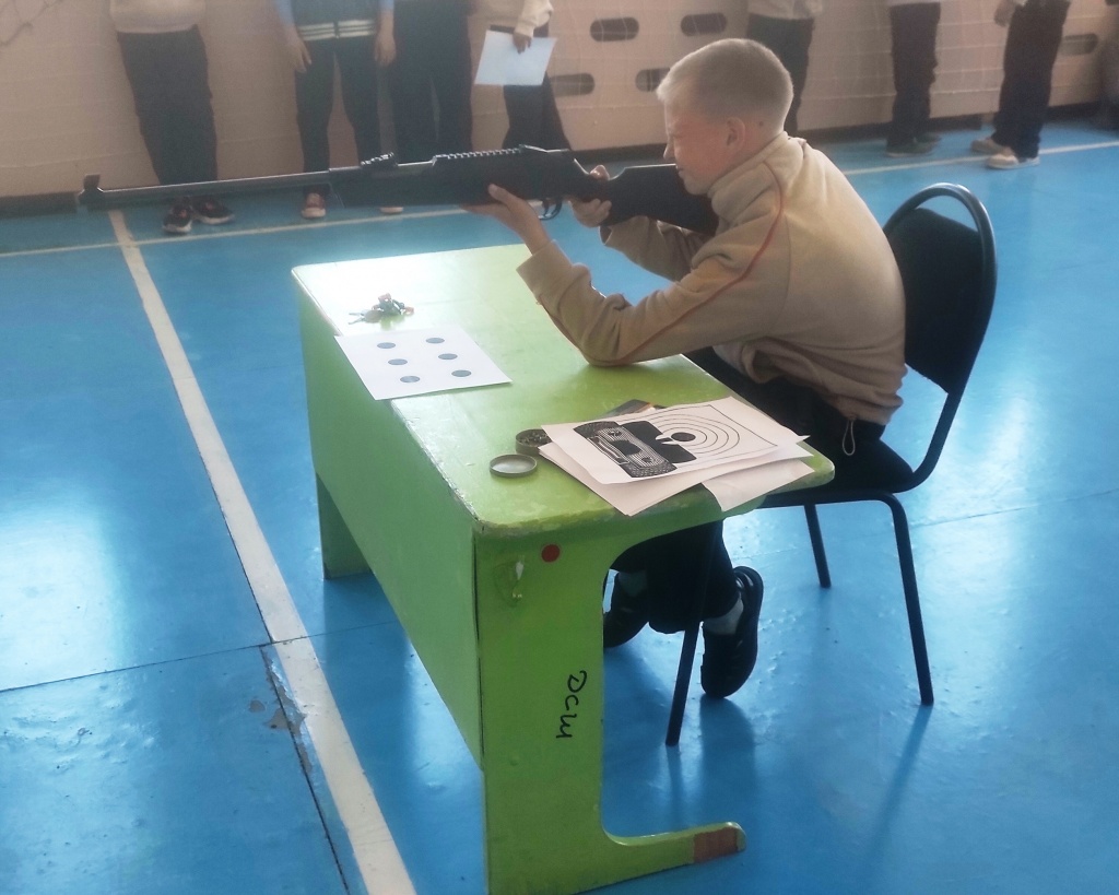 Перед началом урока преподаватель-организатор ОБЖ Кузьминов А.В. напомнил ученикам 3Б класса о правилах безопасного обращении с оружием, после чего юные армейцы перешли к практическому занятию стрельбе из пневматической винтовки по мишени № 9.