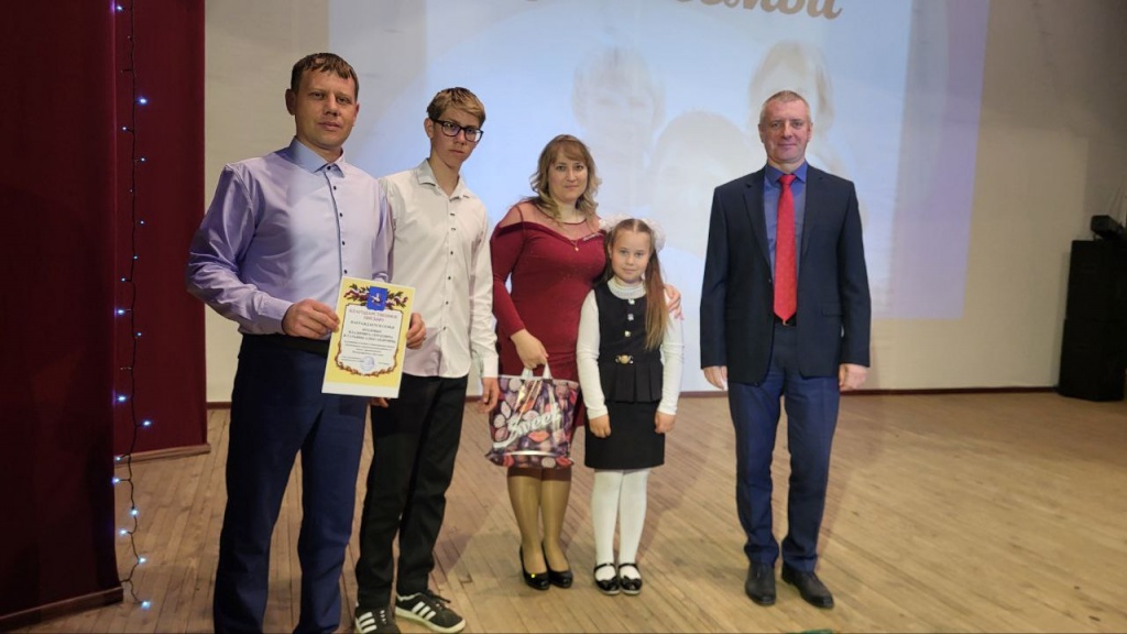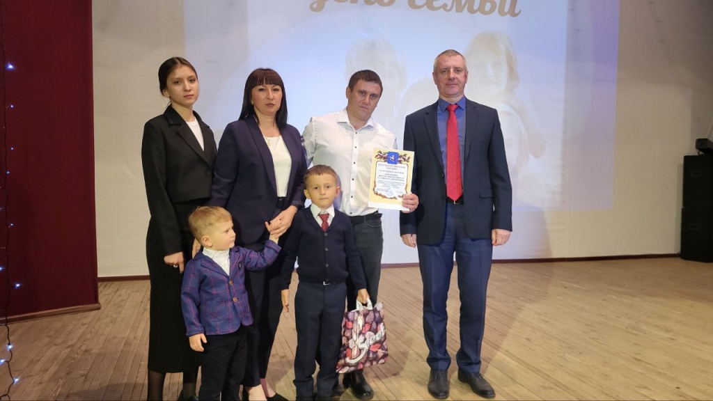 Глава Духовницкого муниципального района С.Ю.Вербин поздравил всех присутствующих в зале с праздником и вручил благодарственные письма семьям Шквариных В.В и Т.В, Козловых В.С и Т.А, Дубовиченко Р.В и С.А за активное участие в общественной жизни Духовницкого муниципального района.