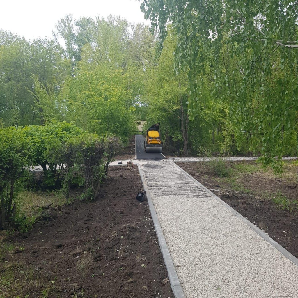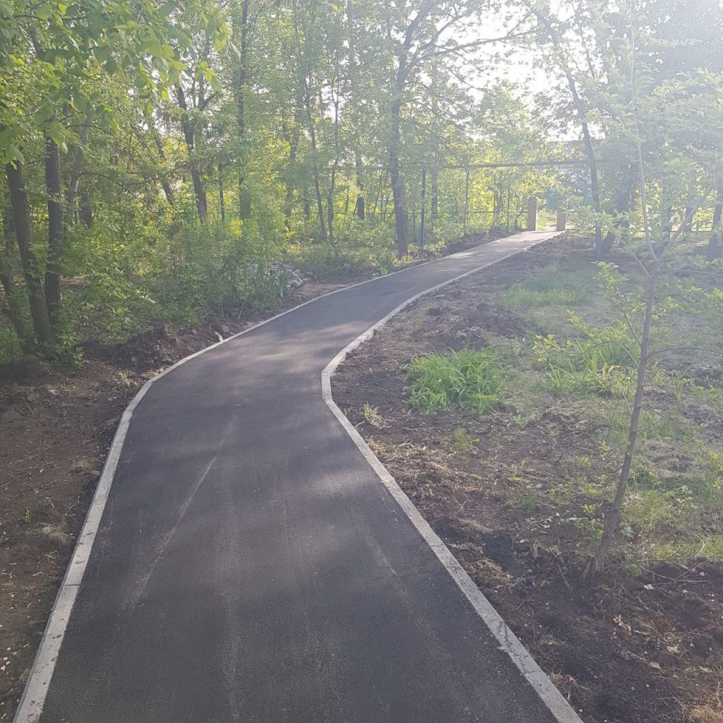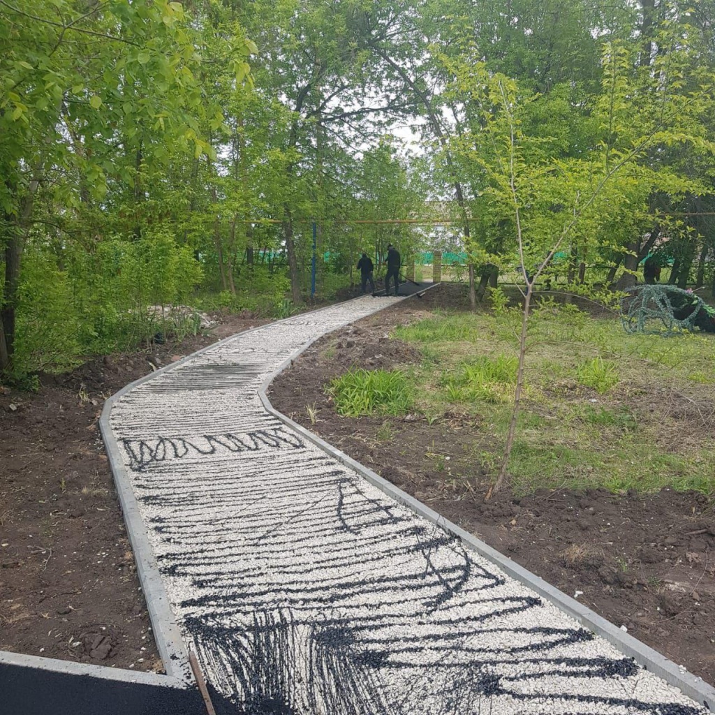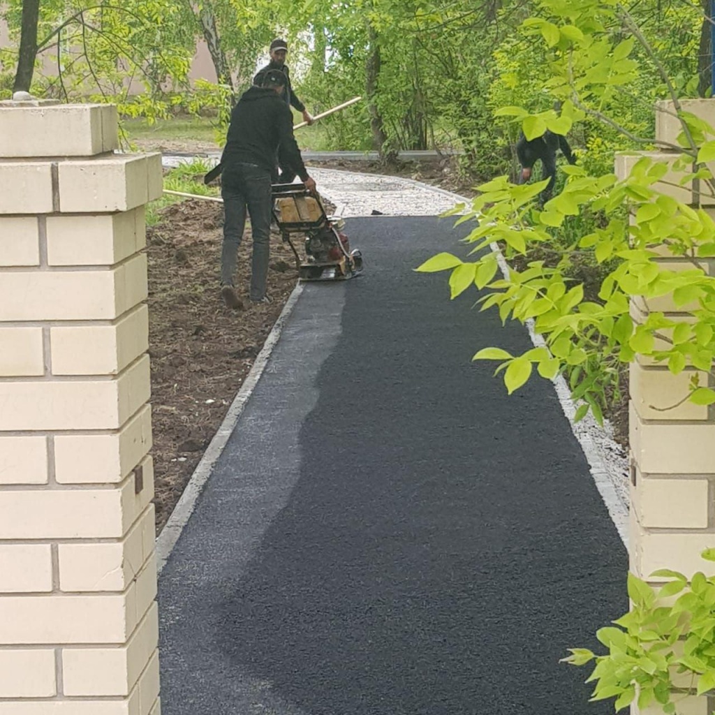 Сметной документацией предусмотрено установка бортовых камней, устройство тротуарной плитки, устройство асфальтобетонных покрытий дорожек.