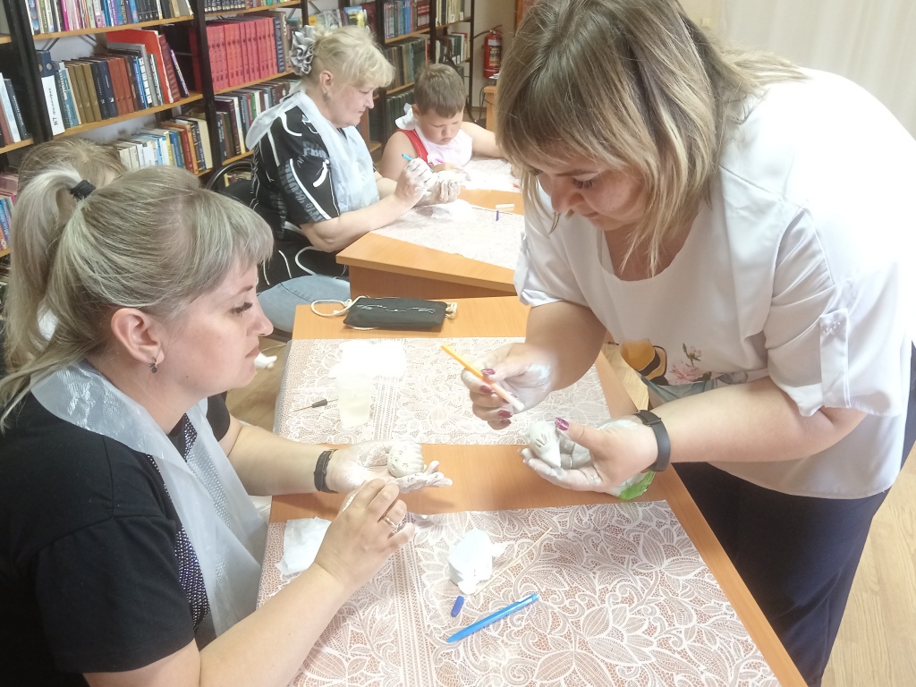 3 июня в читальном зале Духовницкой Центральной библиотеки в рамках проекта, посвященного Году Семьи «Семья и библиотека - грани сотворчества», автором которого является библиотекарь Н.П. Соловьева, прошло мероприятие «Саратовская глиняная игрушка. Из глубинки до наших дней».
