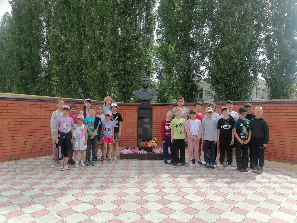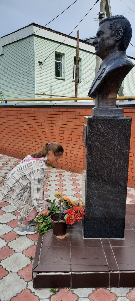 В завершении экскурсии ребята, вместе с воспитателями, возложили цветы к бюсту Гурия Ивановича в Сквере Трудовой Славы.
