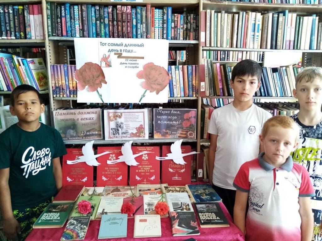 В канун Дня памяти и скорби для юных читателей в Брыковском филиале прошел час памяти и мужества «Тот самый длинный день в году». Ребята узнали, что первыми, кто принял бой, были пограничники Брестской крепости. Участники беседы рассказывали об историях своих родственников, выживших или погибших в эти годы. Читателям были предложены книги по военной тематике.
