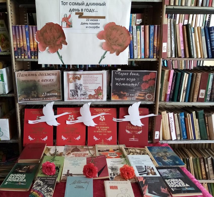 Художественная литература, представленная на выставке «Память должна жить в веках», рассказывает о героических и трагических событиях периода Великой Отечественной войны: обороне Брестской крепости, битве за Москву, защите Сталинграда, блокаде Ленинграда. В завершение мероприятия присутствующие почтили память погибших возложением цветов к памятнику и минутой молчания.