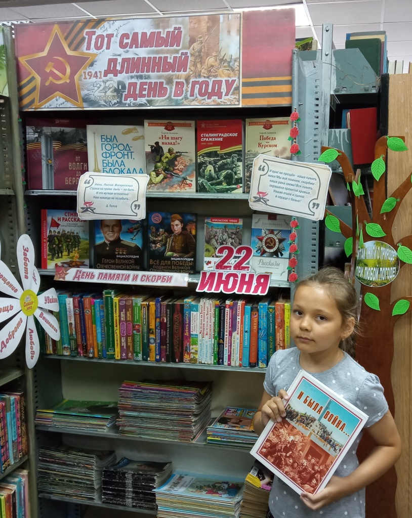 Накануне этой даты библиотекари Духовницкой детской библиотеки оформили тематическую выставку «Тот самый длинный день в году». На выставке представлены книги о крупнейших битвах Великой Отечественной войны, энциклопедии «Герои Великой Отечественной войны», «Всё для Победы: подвиги Великой Отечественной войны» и другие художественные книги о войне.