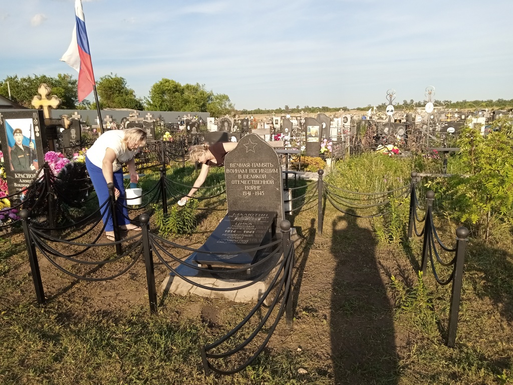 В преддверии Дня памяти и скорби родители обучающихся 11 класса (Грушин В. В., Успанова В. В., Чекмарева Т. Ю.) совместно с классным руководителем Канунниковой И. А. убрали могилы неизвестного солдата и семьи педагогов Кузнецовых.