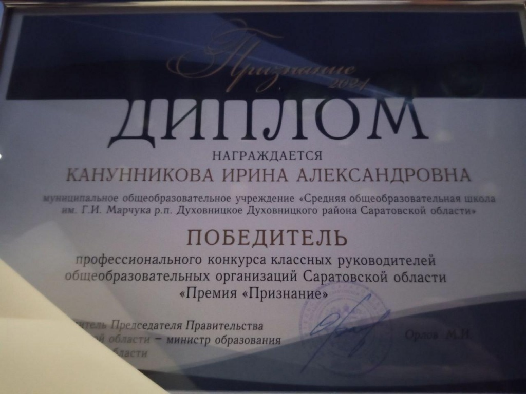 Среди победителей классный руководитель 11 класса МОУ "СОШ им.Г.И.Марчука р.п.Духовницкое" Ирина Александровна Канунникова.