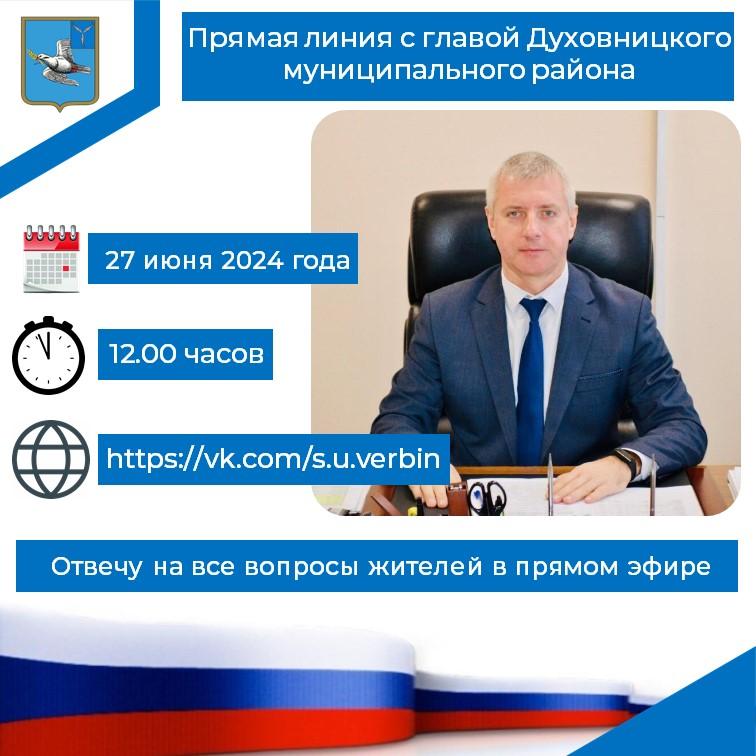 27 июня в 12.00 часов главой района Сергеем Вербиным будет проведена прямая линия с жителями.