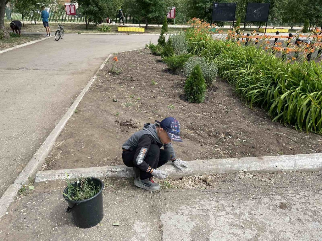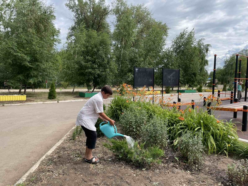 Сегодня ребята провели акцию "За чистоту нашего поселка". Они собирали мусор, поливали растения на пришкольном участке. Воспитатель отряда "Мечтатели" провела беседу "Миру - да, терроризму - нет!