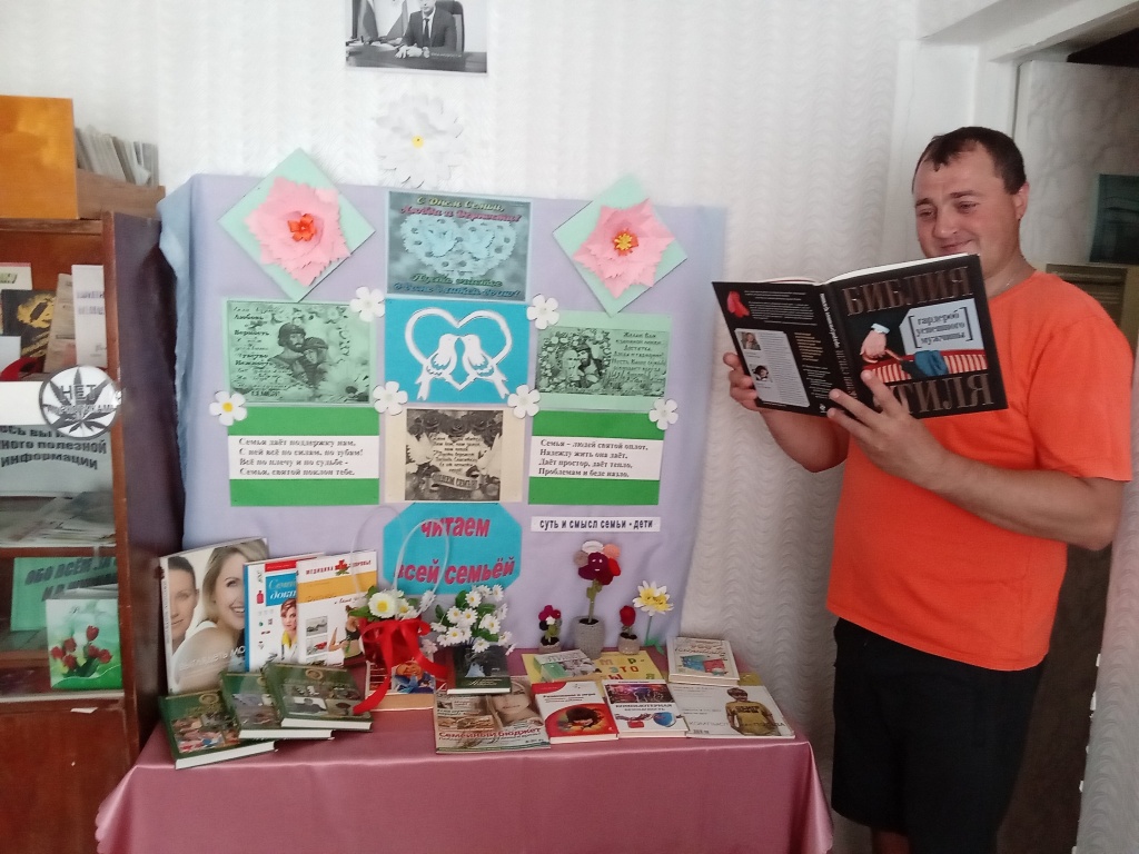 К этому дню библиотекарь оформлена книжная выставка под названием "Читаем всей семьёй". На выставке представлены книги для разных возрастов. Здесь можно узнать много интересного о своём здоровье, о праздниках в кругу семьи, о моде, о семейном бюджете и многие другие познавательные книги, которые могут заинтересовать читателей.