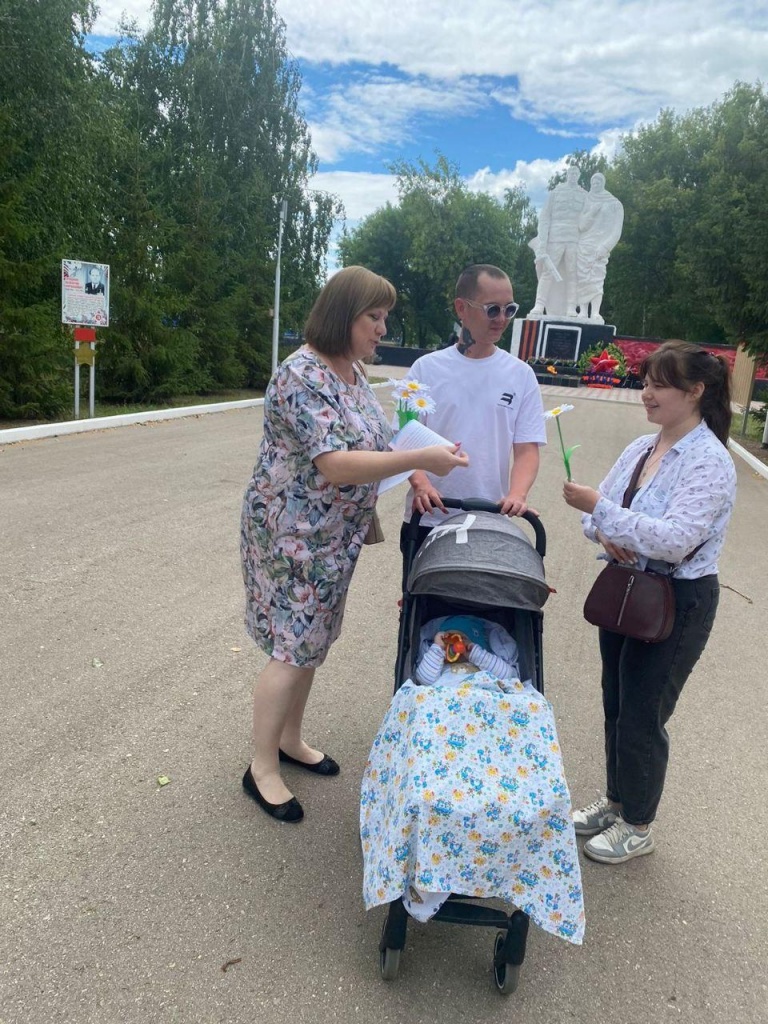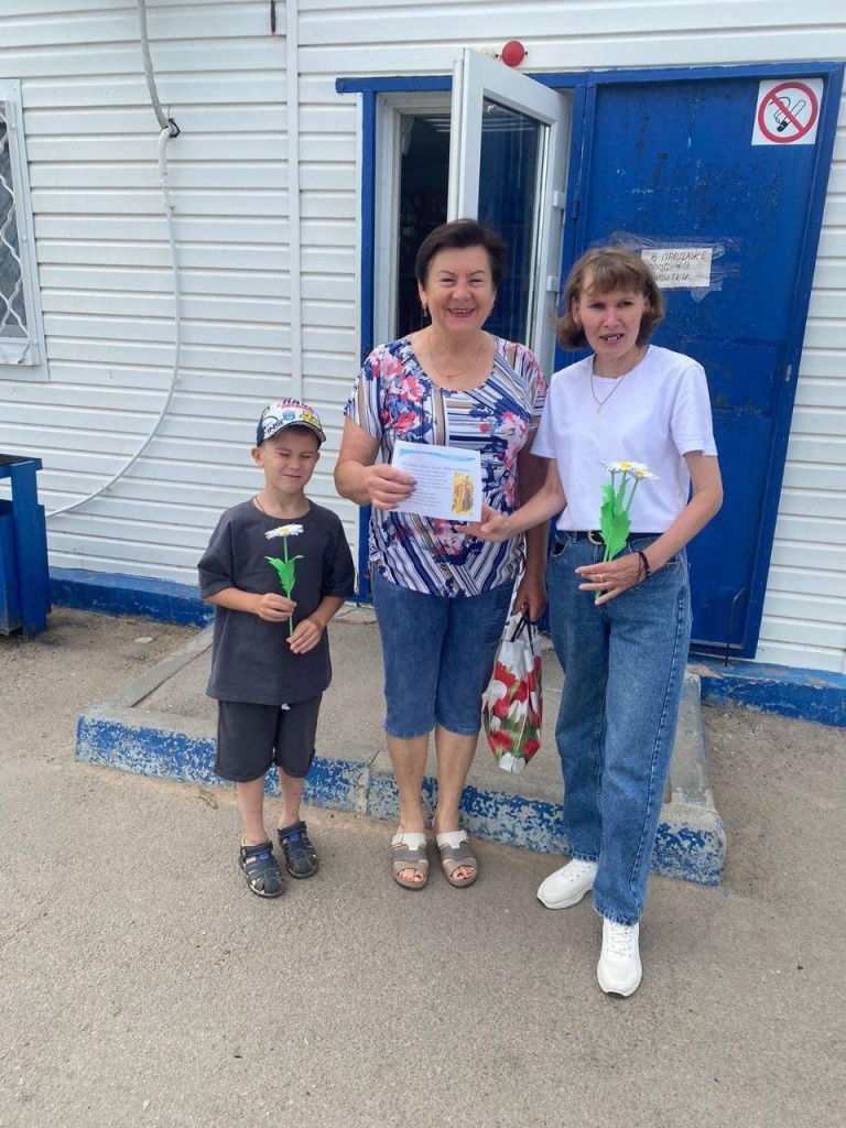 Сегодня, 8 июля сотрудники декоративно-прикладного отдела районного Дома культуры поздравили жителей поселка и подарили им символ счастья-ромашку и памятку об этом празднике.