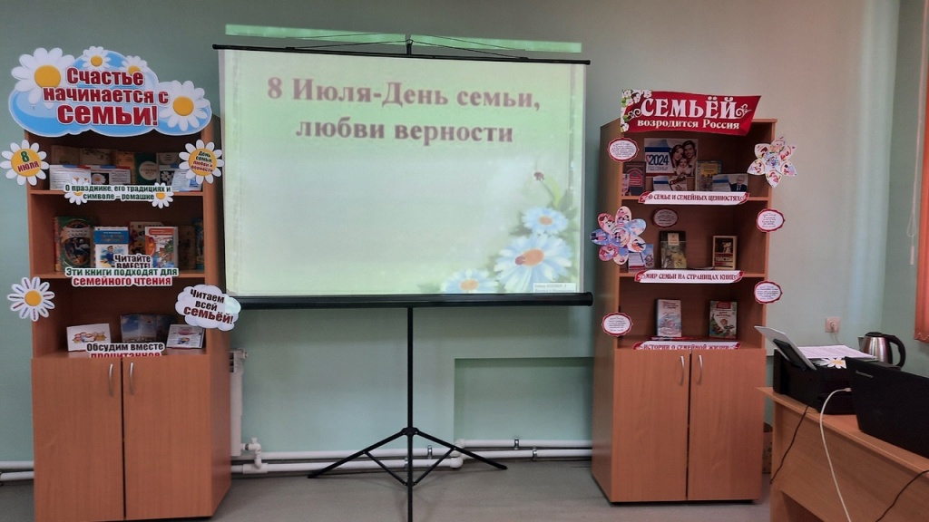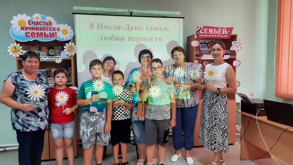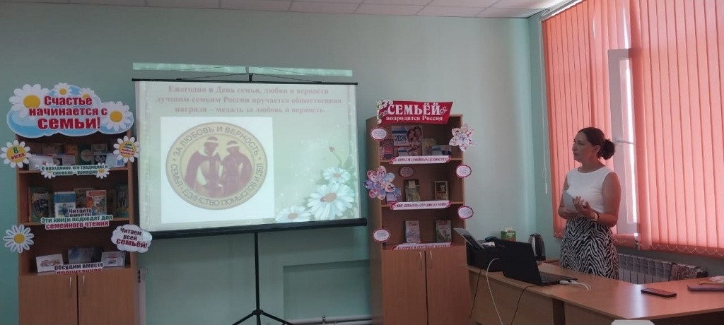 В рамках праздника библиотекарь Теликовского сельского филиала провела мероприятие "Семья - это счастье, любовь и удача". Мероприятие началось с рассказала библиотекарем истории праздника. Присутствующие познакомились с легендой о Петре и Февронии, а так же с традициями, символом праздника и медалью "За любовь и верность". Дети отгадывали загадки "Моя семья", объясняли смысл пословиц о семье.