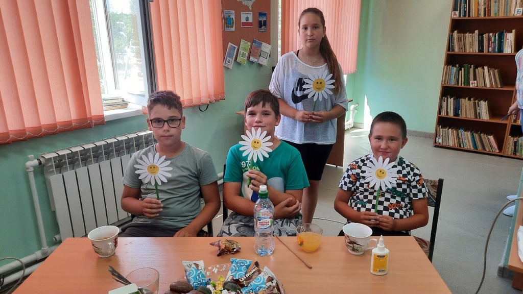 В заключении мероприятия библиотекарь провела мастер класс по изготовлению символа праздника - нежного цветка ромашка.