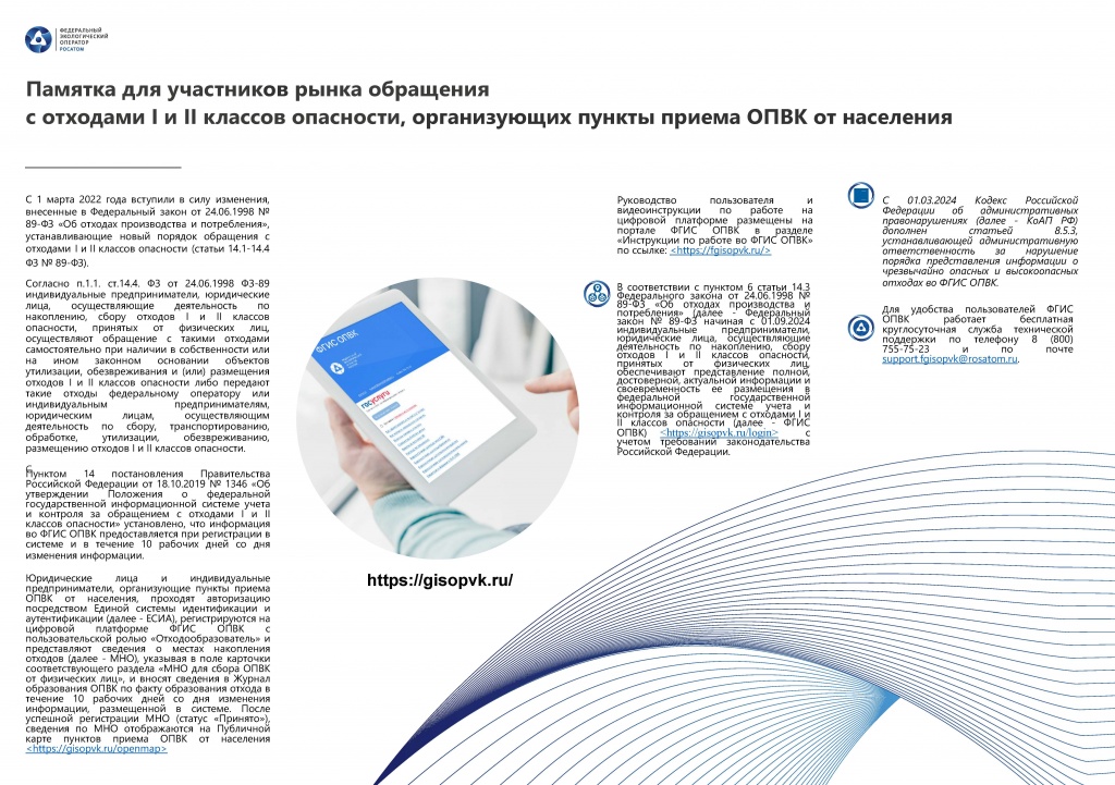 Памятка для участников рынка обращения с отходами I и II классов опасности, организующих пункты приема ОПВК от населения