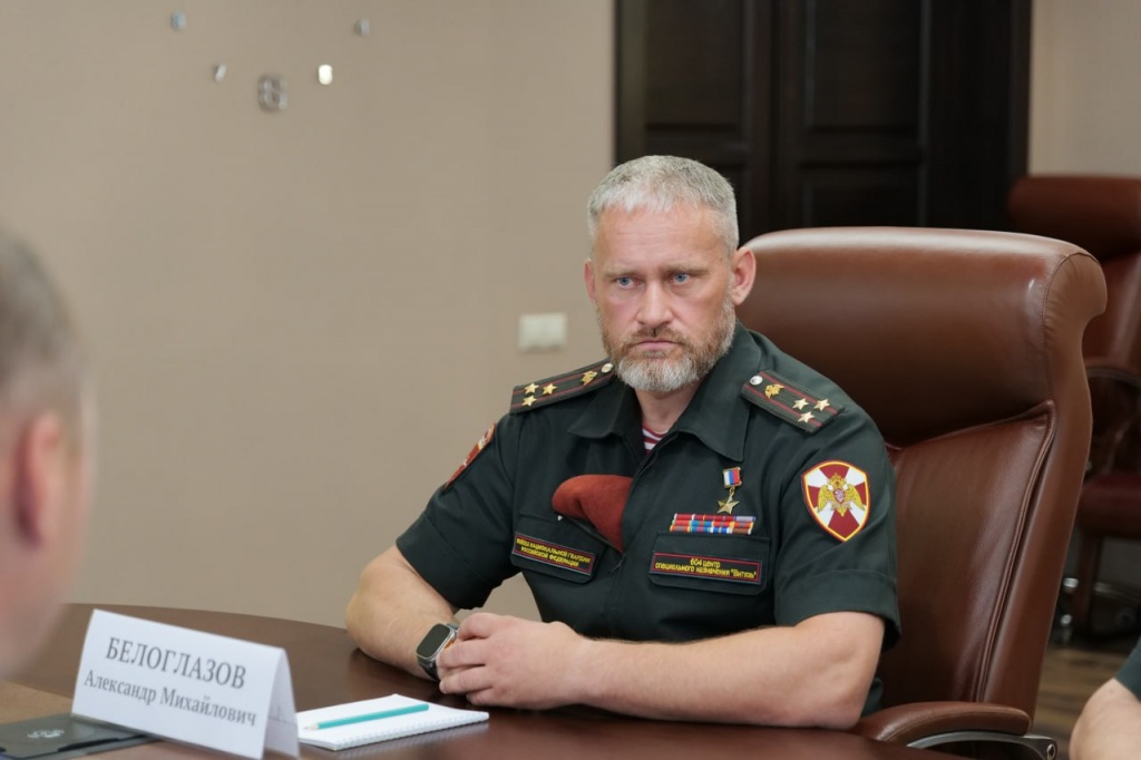 Нового руководителя представил командующий Приволжским округом войск национальной гвардии Российской Федерации генерал-полковник Сергей Просяник. Он отметил, что Александр Белоглазов родился в Саратовской области. В 2000-м году с отличием окончил Саратовское высшее военное командное Краснознаменное училище ВВ МВД России имени Дзержинского. Принимал участие в выполнении более 500 боевых и специальных задач. В мае 2022 года за мужество и героизм, проявленные в ходе специальной военной операции, полковник получил звание Героя России.