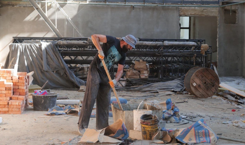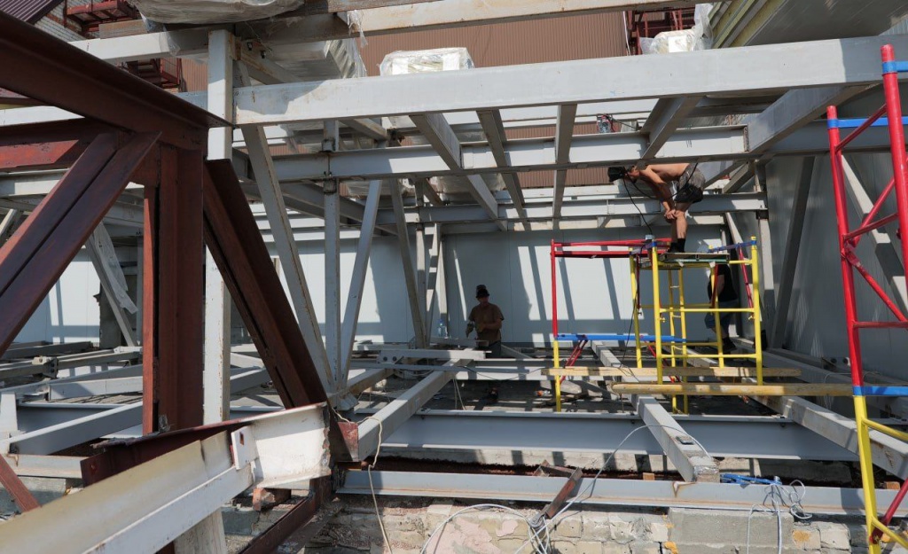 Что уже сделано на данный момент: в зрительном зале установили металлоконструкции, которые необходимы для дальнейшей сборки сценического оборудования. Продолжается монтаж коммуникаций и отделка: отштукатурены стены и залита стяжка на двух этажах, ведется устройство системы электроснабжения, кровли над существующим зданием, кирпичных перегородок.