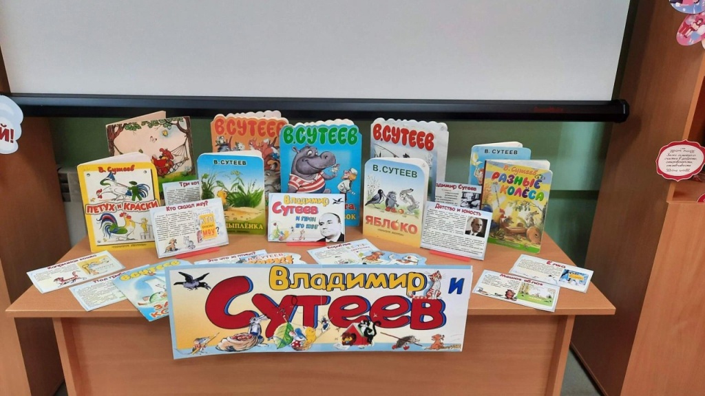 Библиотекарь познакомила ребят с одним из самым любимым детским писателем Владимиром Григорьевичем Сутеевым. С его творчеством знакомы все дети с самого раннего возраста, именно его книги становятся первыми для многих малышей.