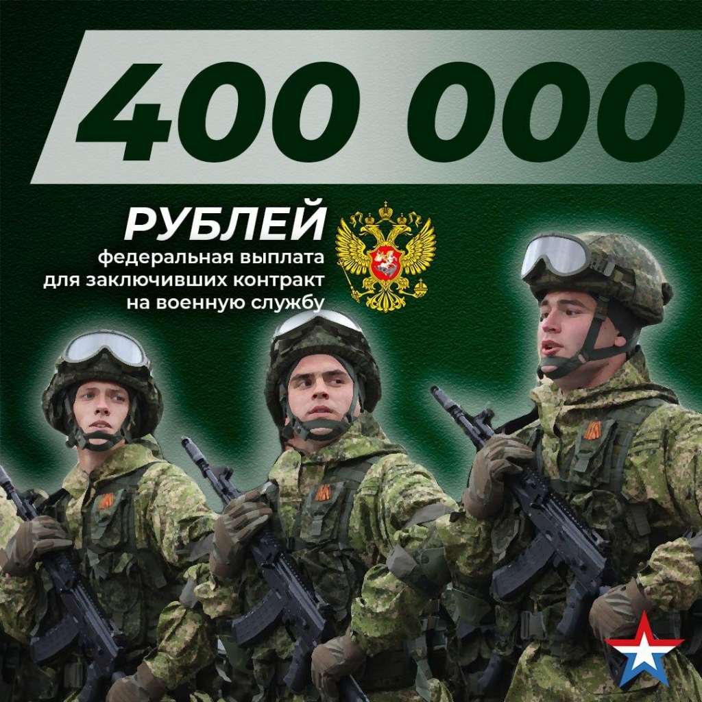 Граждане, заключившие контракт о прохождении военной службы с 1 августа по 31 декабря 2024 года, получат единовременную выплату в размере 400 тысяч рублей. Она была увеличена вдвое по решению Президента Владимира Путина.
