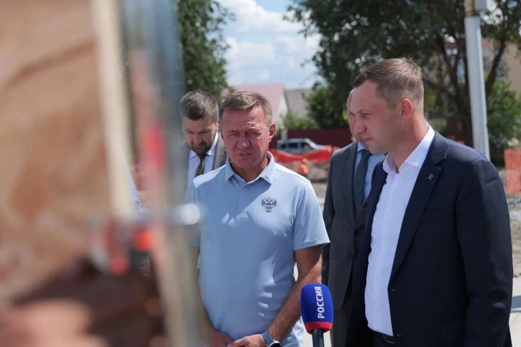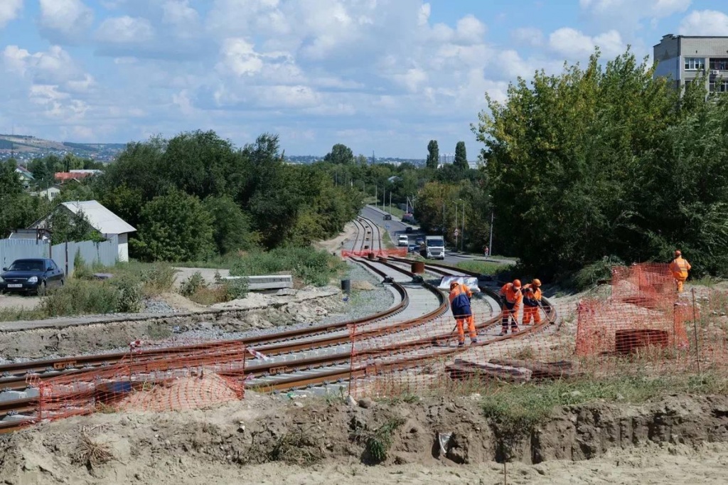 Министр транспорта РФ Роман Старовойт в ходе рабочего визита в Саратовскую область вместе с губернатором Романом Бусаргиным посетил строительную площадку скоростного трамвая на маршруте № 8.
