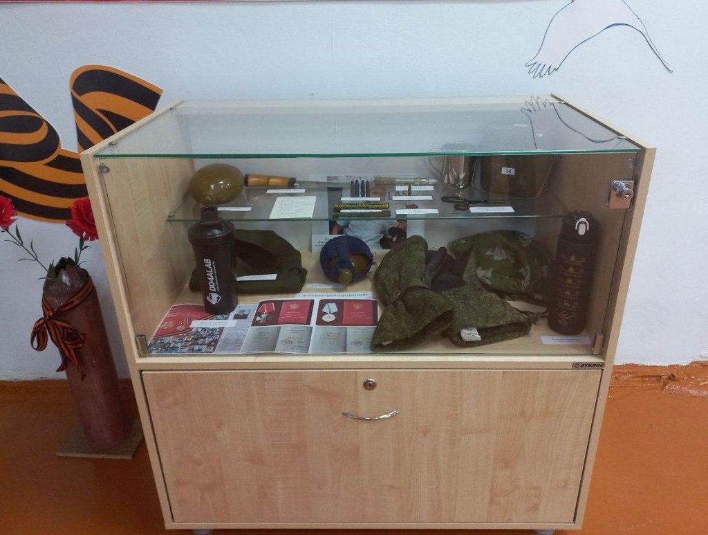Недавно зона пополнилась новыми экспонатами – личными вещами воинов, которые в настоящее время стоят на защите Родины, а также предметами, принадлежащими выпускнику нашей школы Хохлову И.Е. – героически погибшего в бою.