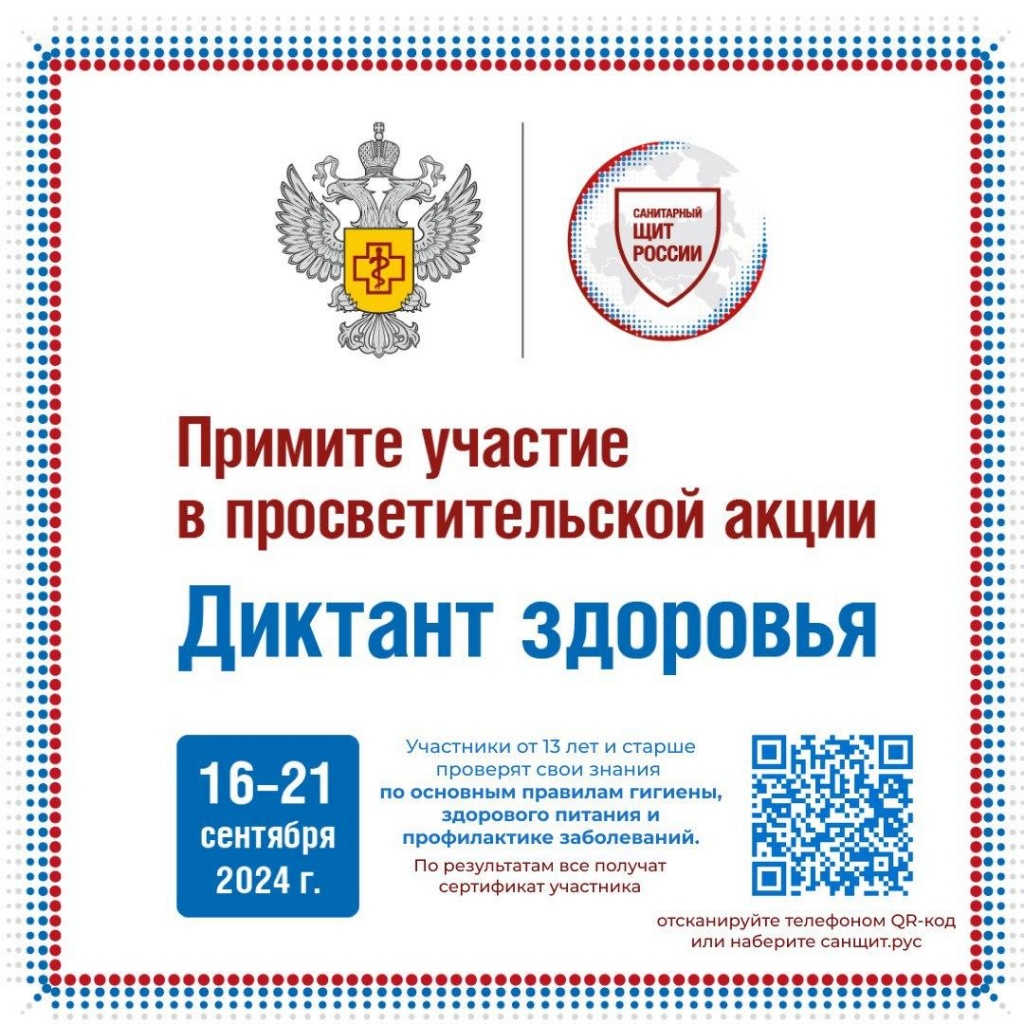В России с 16 по 21 сентября пройдет федеральная образовательная акция «Диктант здоровья». Цель мероприятия – популяризация санитарно-гигиенической грамотности и норм здорового образа жизни.