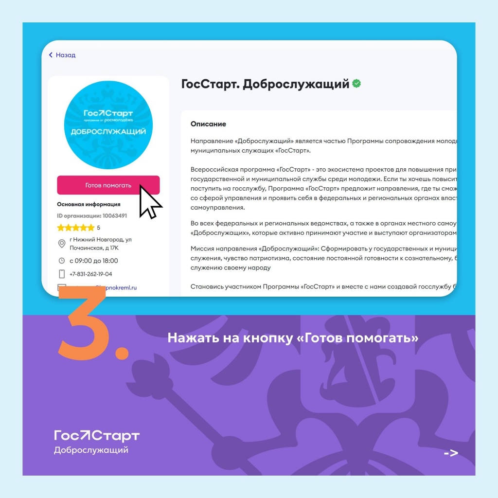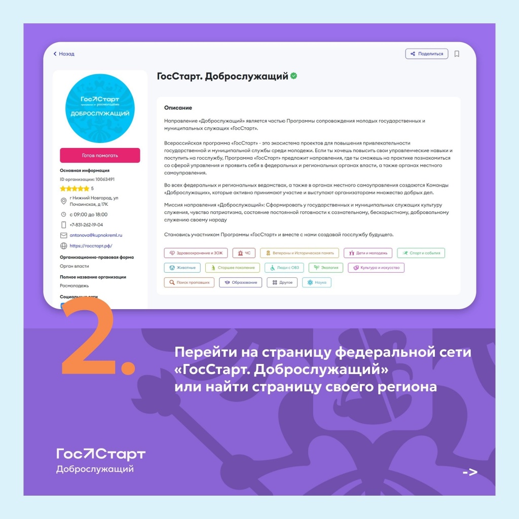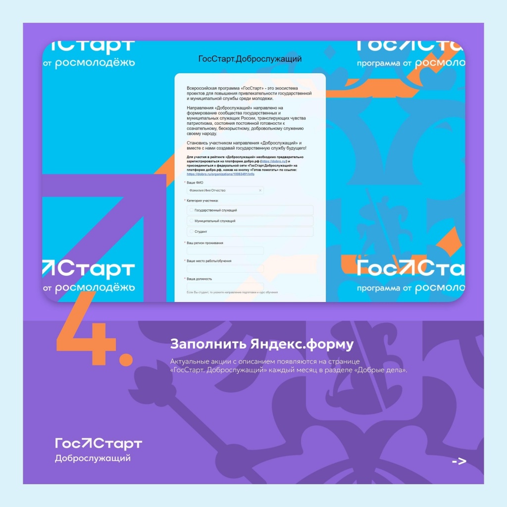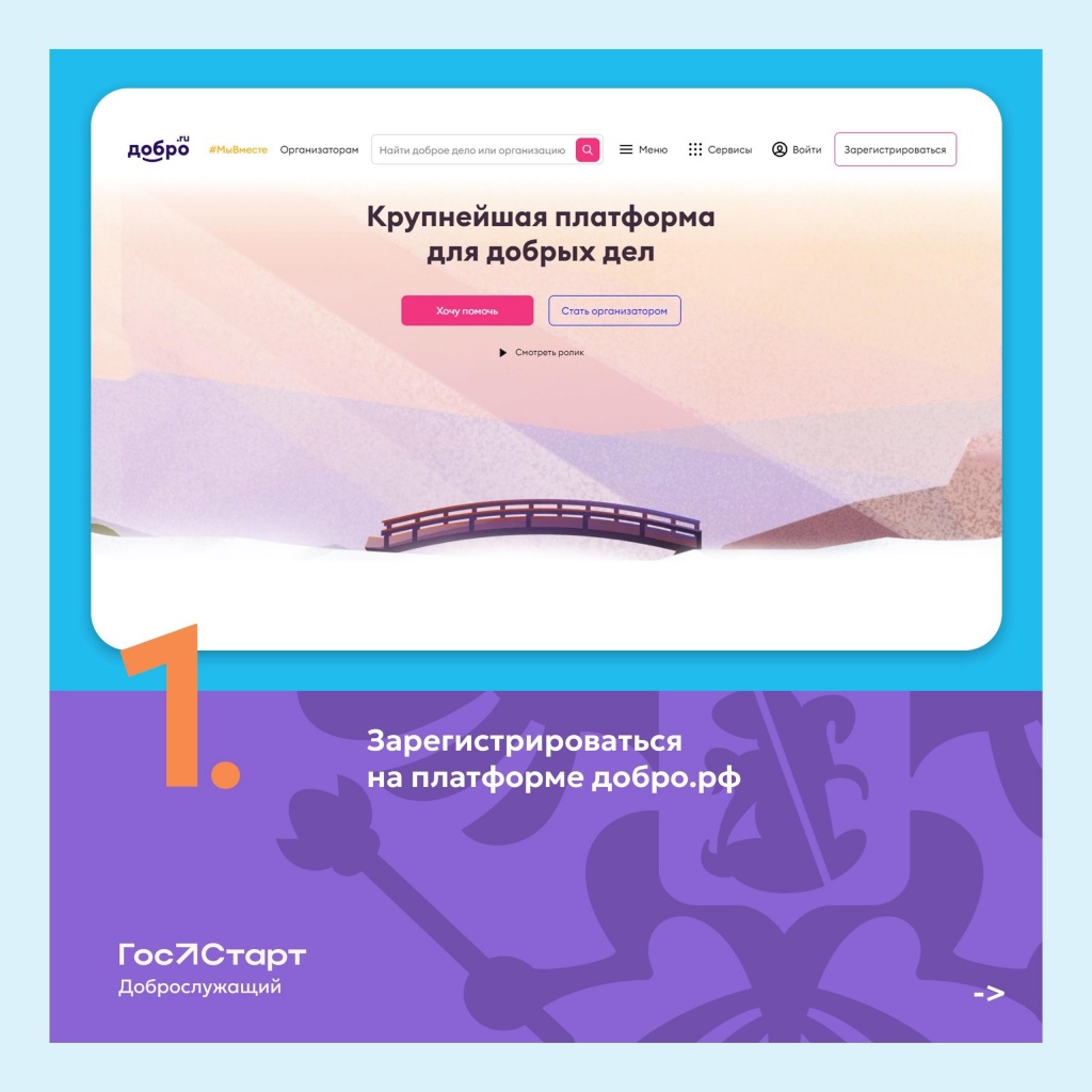 А если на всей земле пока слишком масштабно, то мы предлагаем совершать добрые дела в рамках направления «ГосСтарт.Доброслужащий».