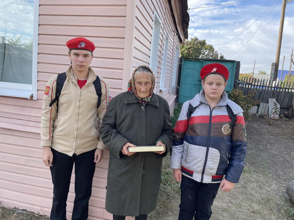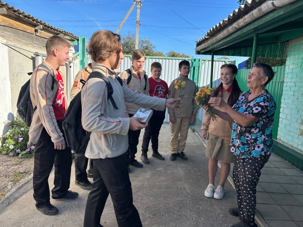 1 октября, в Международный день пожилых людей, ребята из Отряда Юнармия "Патриоты России" МОУ СОШ им. Г.И. Марчука р.п. Духовницкое Саратовской области" 9 "Б" класса (кл.рук. Немцева Г.А.) поздравили ветеранов труда и маму участника СВО.