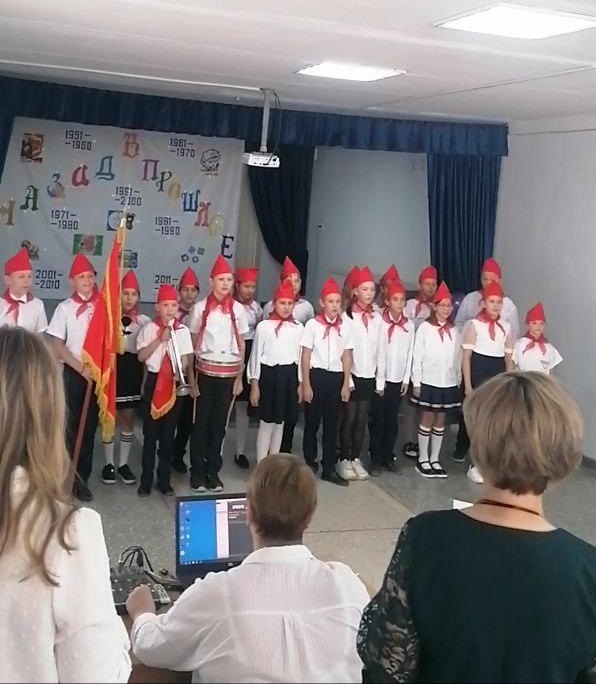 После уроков для наставников был дан концерт. Начали его пятиклассники-пионеры. С песней «Взвейтесь кострами» они вошли строем и сдали рапорт директору школы. Ведущие, одетые по той моде, начиная с 50-х годов, знакомили зрителей не только со страницами истории нашей страны, но и с песнями, танцами, сценками, выпусками «Ералаша», подготовленными учениками школы.