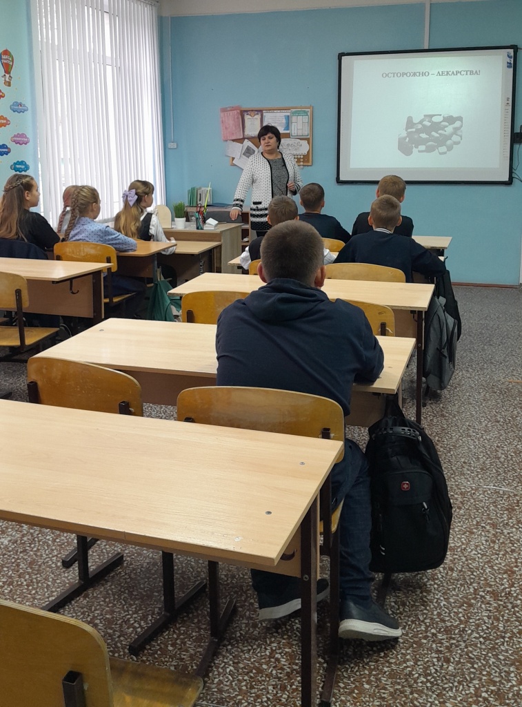 10 октября в рамках "Единого дня безопасности" школьный библиотекарь МОУ "СОШ им.Г.И.Марчука р.п.Духовницкое" Верховцева Л.В. провела час здоровья "Профилактика немедицинского потребления лекарственных средств" в 6 "В" классе.