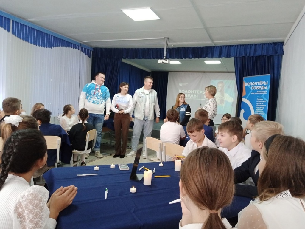 На открытие приезжали представители регионального отделения Всероссийского общественного движения "Волонтёры Победы" Евгения Мокшина, Никита Евтушок, Луиза Кузяева, Алексей Шуманский. Они рассказали обучающимся о движении и провели интеллектуальную игру "РИСК", в которой приняли участие родители.