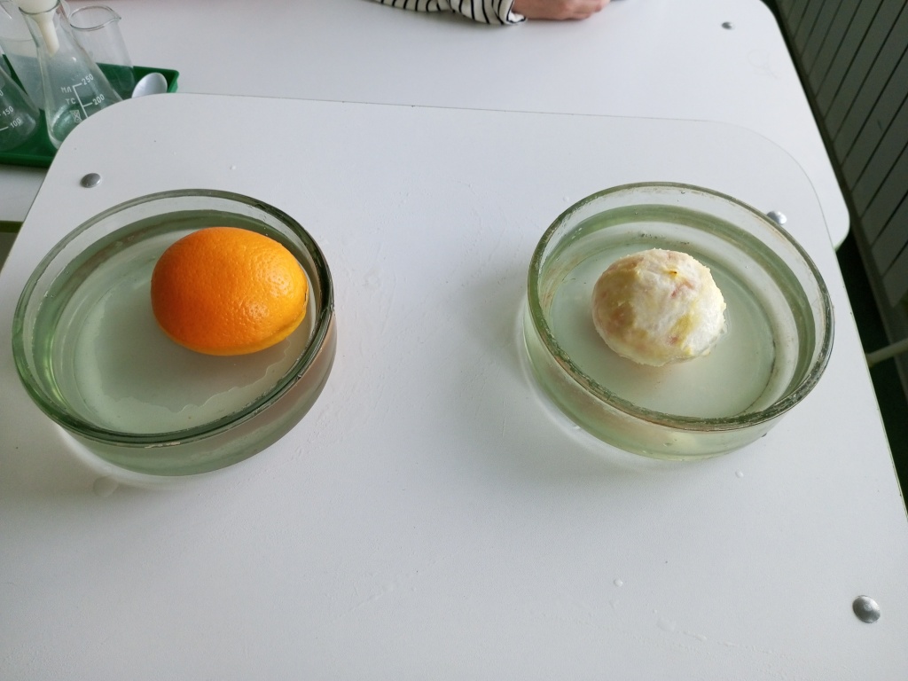 Обучающиеся познакомились с явлением капиллярности. Выяснили, что через явление капиллярности растения извлекают воду из почвы и транспортируют её к листьям. Проделывая опыт с апельсинами, ребята сделали вывод, что пористая кожура апельсина менее плотная, чем его внутренность, содержит много частичек воздуха и не позволяет ему утонуть, а очищенный апельсин тонет. Вызвал интерес опыт, который доказал, что солёная вода плотнее пресной.