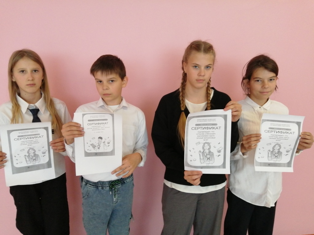 Учащиеся 7-9 классов филиала МОУ «СОШ им.Г.И.Марчука р.п.Духовницкое» в с.Липовка проявили активность и интерес к изучению финансовых аспектов, что свидетельствует о важности подобных мероприятий для формирования ответственного отношения к своим финансам. По итогам зачета все участники, успешно справившиеся с заданиями, получили именные сертификаты, которые являются не только подтверждением знаний, но и мотивацией продолжать изучать финансы.