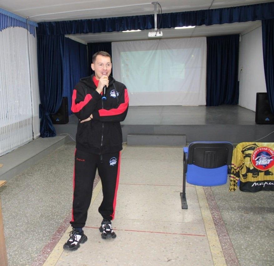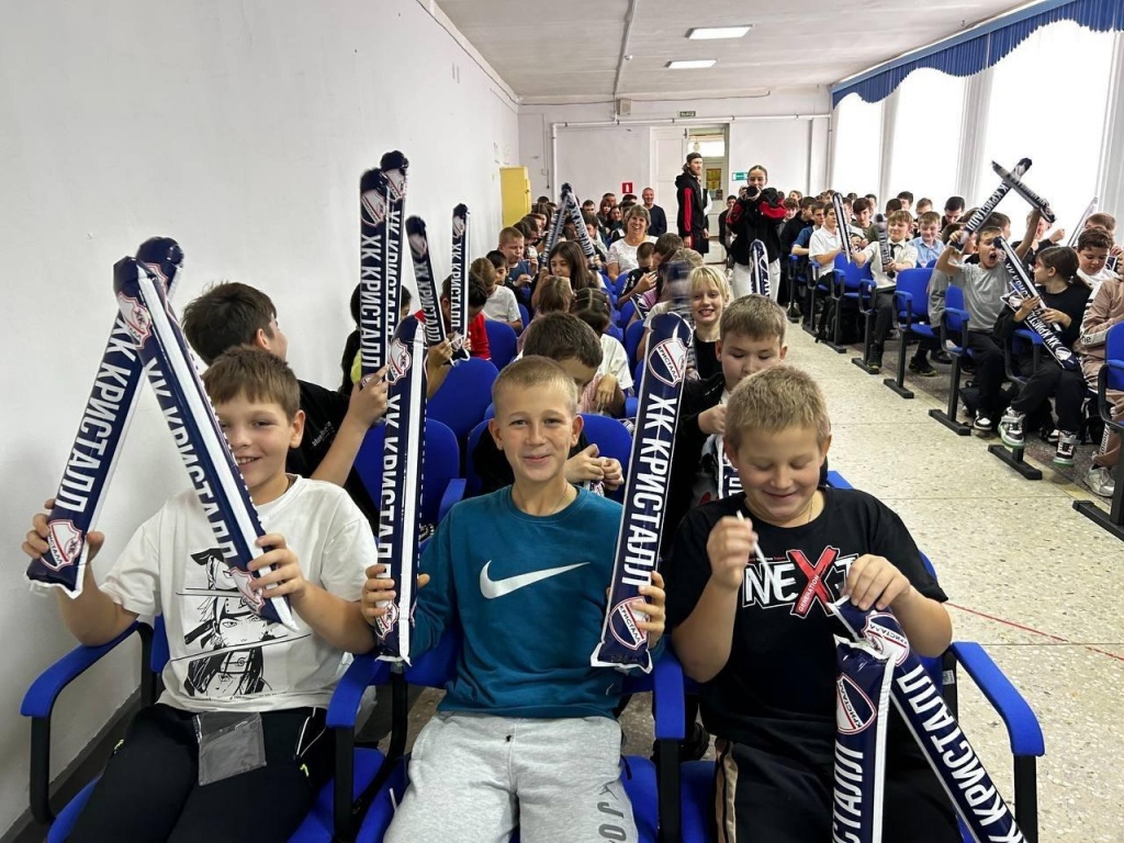 Воспитанники школы олимпийского резерва, в недавнем прошлом члены ХК Кристалл , а сейчас детские тренеры по хоккею с шайбой Владимир и Владислав Журавлёвы рассказали школьникам про хоккей и его влиянии на становление личности, про хоккейные традиции и лиги , про спортивное питание и о многом другом.
