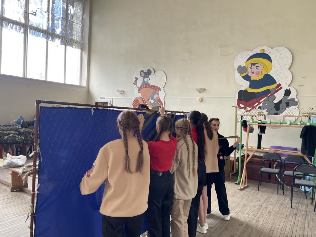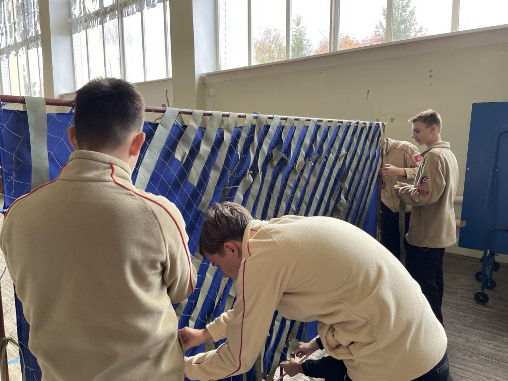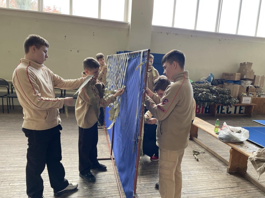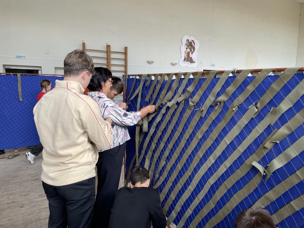 Ребята 9 "Б" класса МОУ "СОШ им. Г.И. Марчука р.п. Духовницкое Саратовской области" из Отряда Юнармия "Патриоты России", вместе со своим классным руководителем Немцевой Галиной Александровной, в очередной раз пришли в районный Дом культуры, чтобы помочь плести маскировочные сети для воинов, находящихся на СВО.