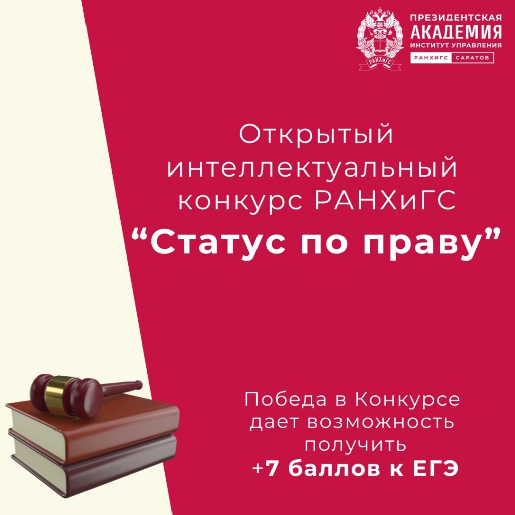 ПИУ РАНХиГС приглашает абитуриентов принять участие в Открытом интеллектуальном конкурсе РАНХиГС «Статус по праву»