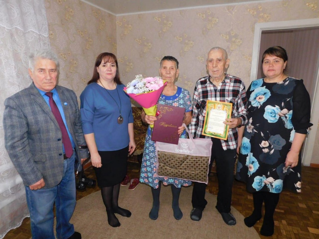 Поздравить юбиляров с такой значимой датой пришли заместитель главы администрации Лариса Белесова, начальник отдела ЗАГС Татьяна Шмидт, председатель Общественного Совета Юрий Пронин. Гости пожелали супругам крепкого здоровья и долголетия, радости и душевного спокойствия, любви и гармонии в семье, вручили цветы и подарки.