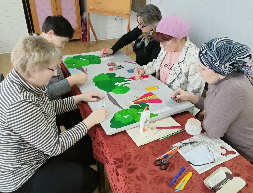 Участники клуба «Уют в доме» Центральной библиотеки не остались в стороне от праздника. В преддверии праздника рукодельницы продолжили работу над панно «Сарафанная Русь».