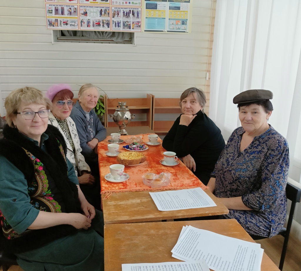Завершилась встреча чаепитием за самоваром, с вкусным пирогом, который приготовила Наумова Любовь Николаевна. Участницы клуба отгадывали загадки, пели частушки, принимали участие в инсценировке сказки.
