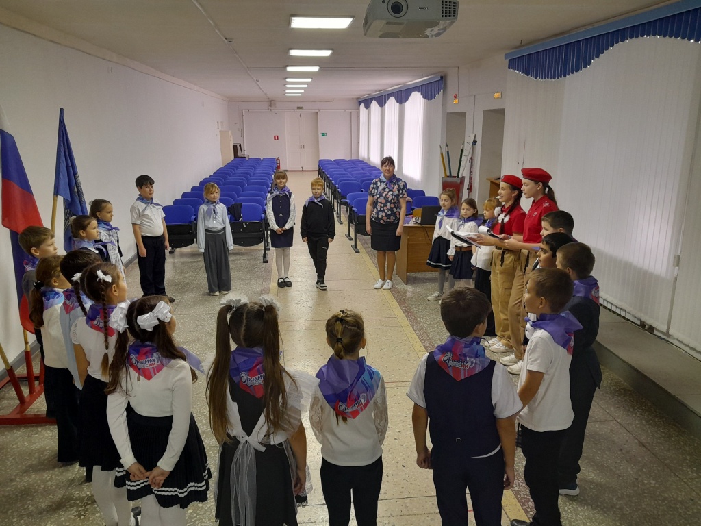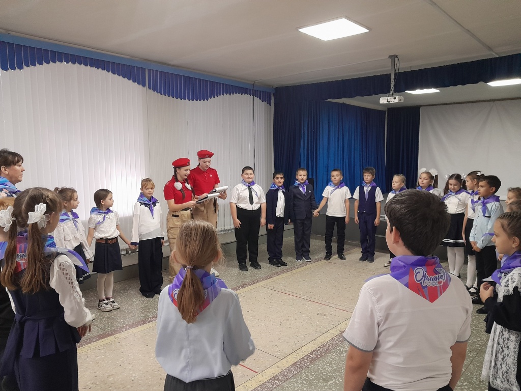 Ведущими мероприятия выступили юнармейцы отряда "Патриоты России" Евдокимова Алина и Манухина Полина. девочки вместе ребятами с гордостью произнес клятву "Орленка", обещая быть честными, добрыми и заботливыми друзьями.