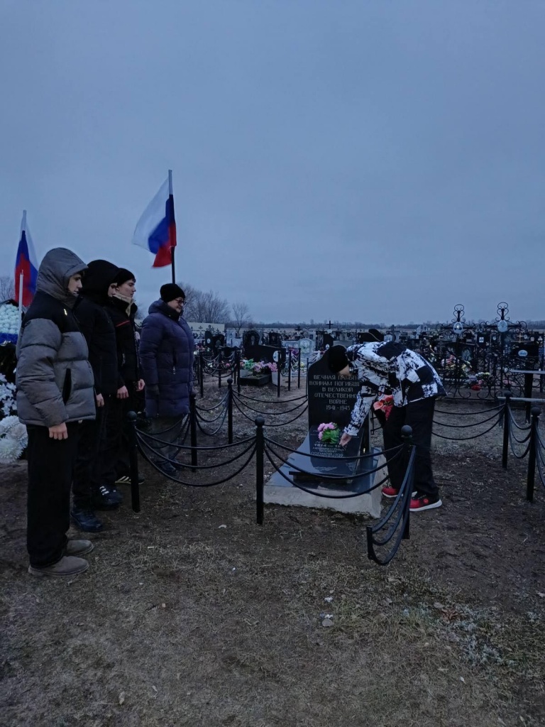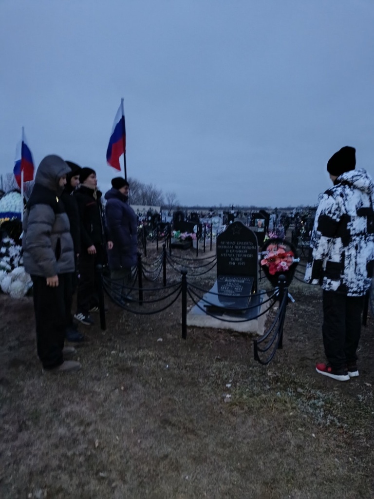03 декабря отмечается День Неизвестного солдата. Ребята 9 "Б" класса МОУ "СОШ им.Г.И.Марчука р.п.Духовницкое" из отряда Юнармия "Патриоты России", вместе со своим классным руководителем Немцевой Галиной Александровной, возложили цветы на могилу неизвестного солдата и почтили память всех погибших минутой молчания.