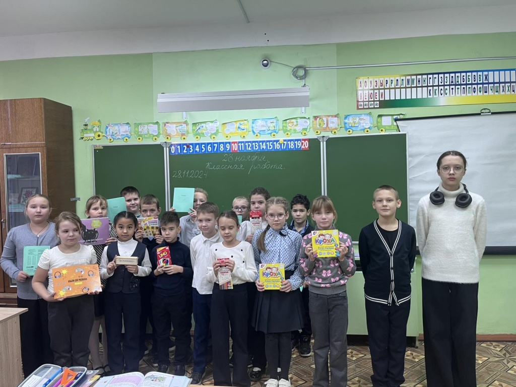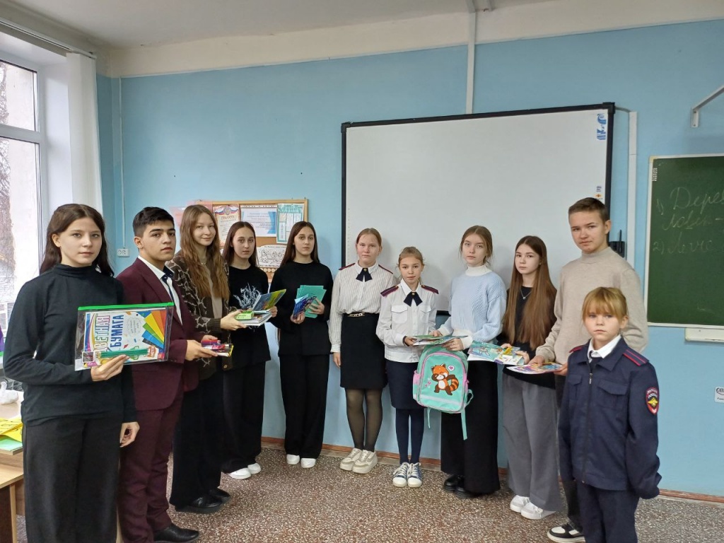 Организатором акции был 6 "В" класс ЮДП "Созвездие" под руководством Ермоленко Е.Ю. Классы школы, отдельные учащиеся и педагоги приняли участие в этой доброй акции. Настольные игры, развивающие головоломки, пазлы, книги , цветные карандаши, краски, альбомы и другие канцтовары были подарены детям коррекционного класса. Ребята были очень рады и счастливы.