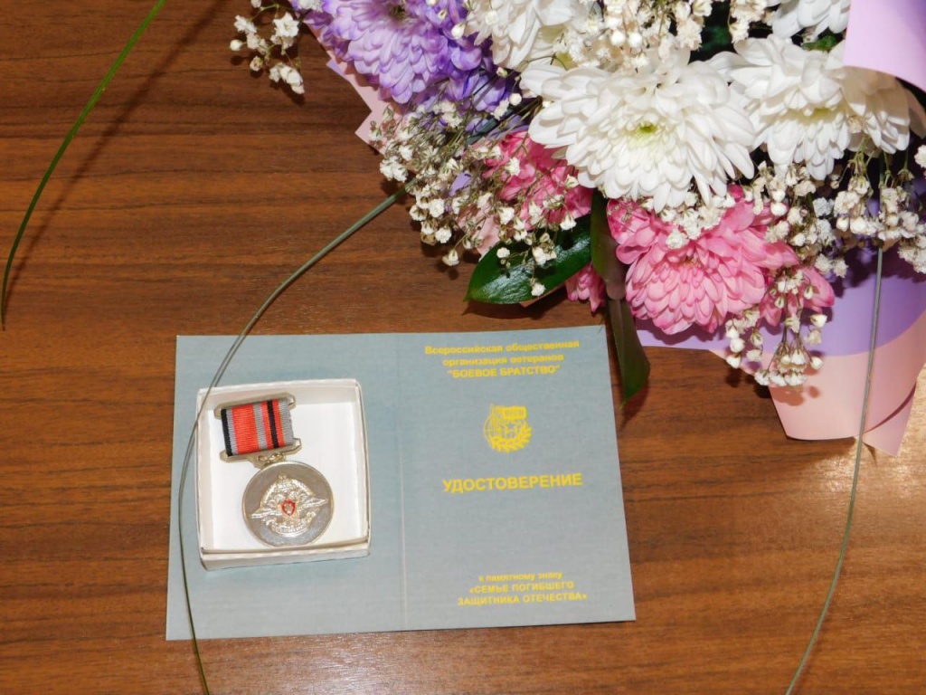 От Всероссийской общественной организации ветеранов «Боевое Братство» Иван Сергеевич вручил памятный знак «Семье погибшего защитника Отечества».