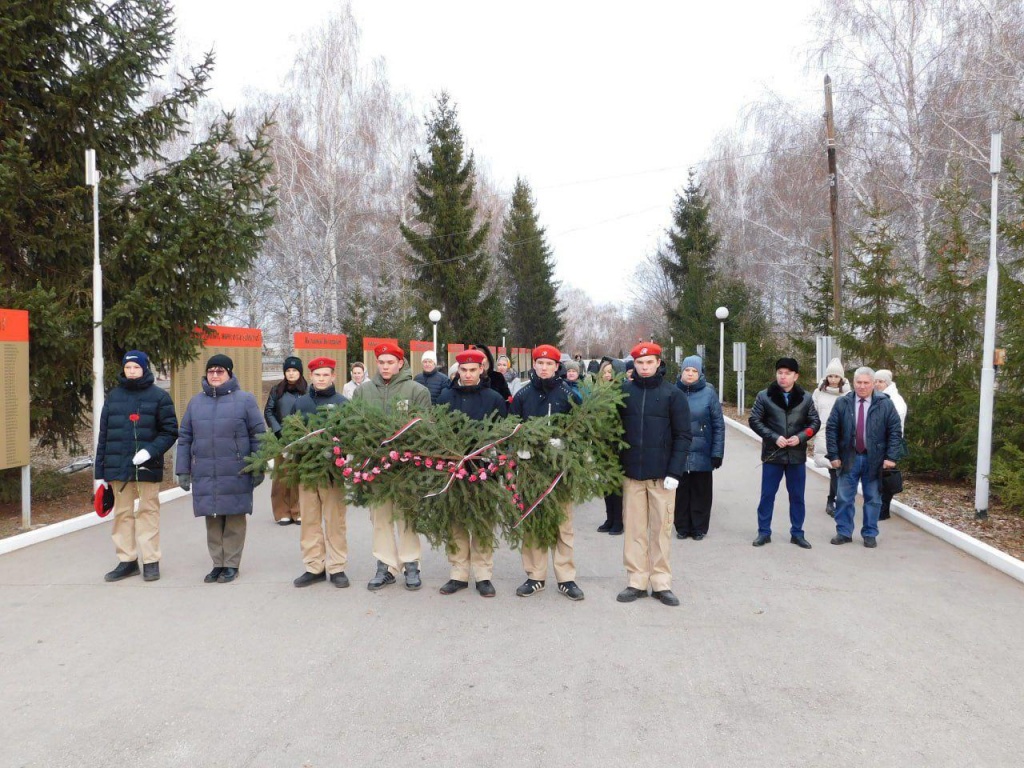 На церемонию возложения собрались представители администрации района, трудовых коллективов, общественных организаций, юнармейцы и жители поселка.