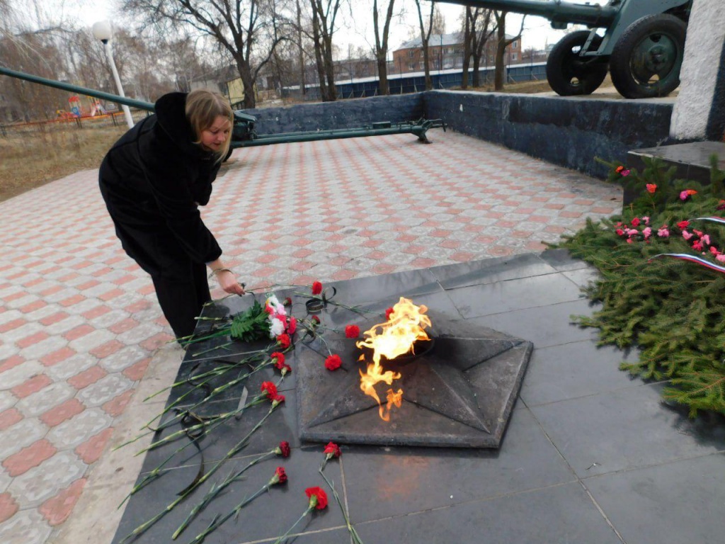 Участники мероприятия возложили цветы к Вечному огню и почтили память героев минутой молчания.