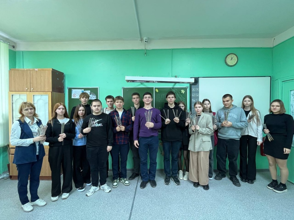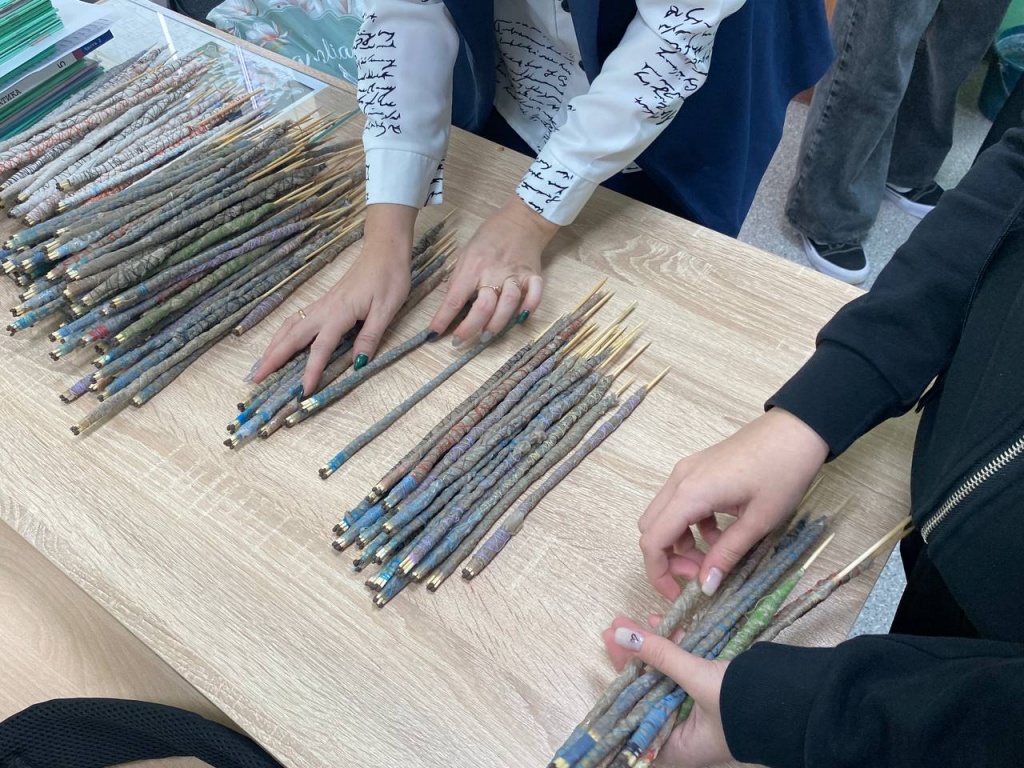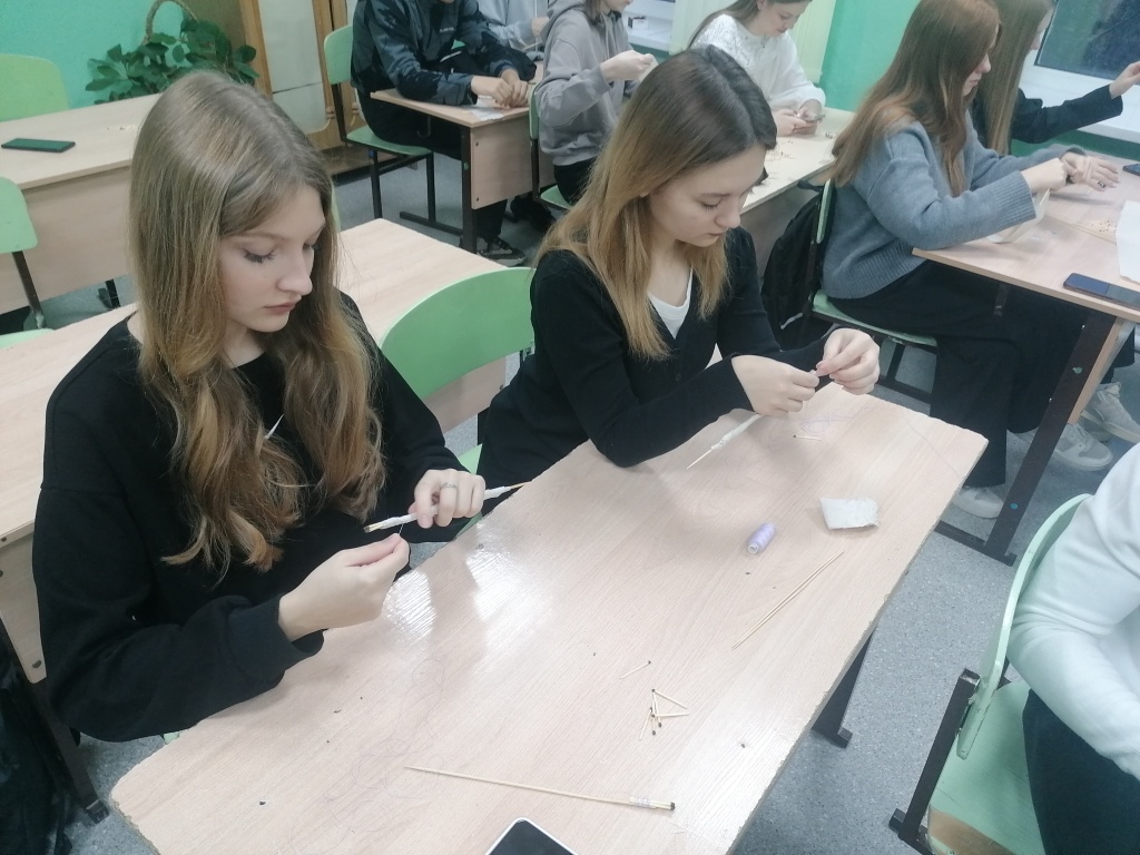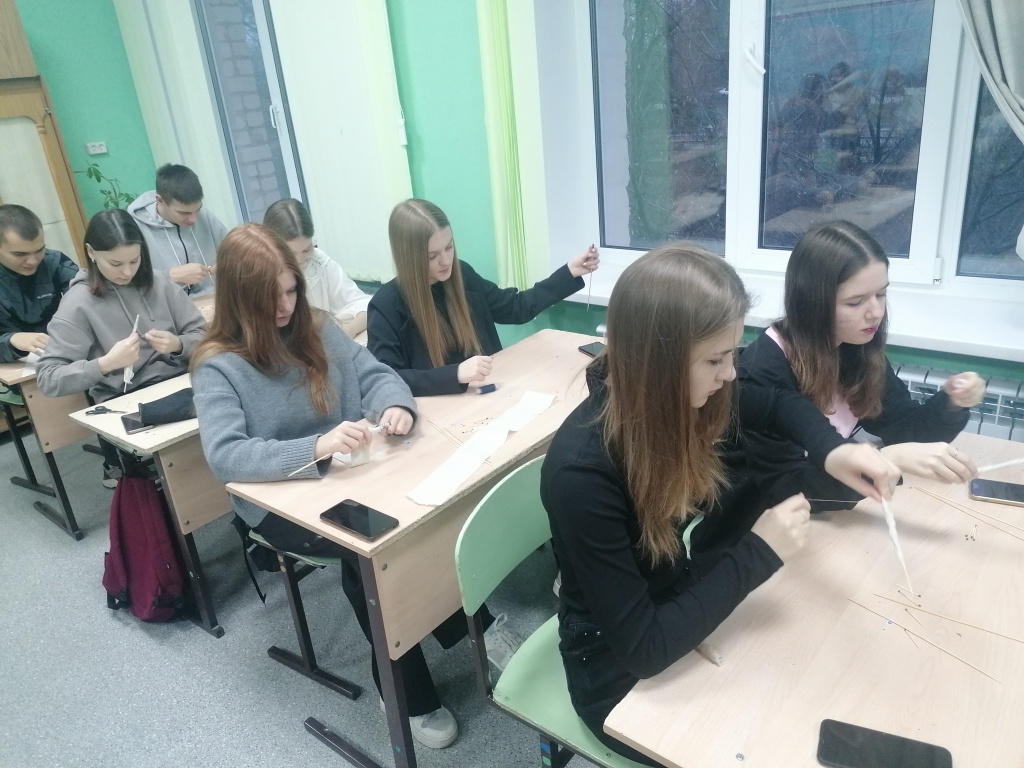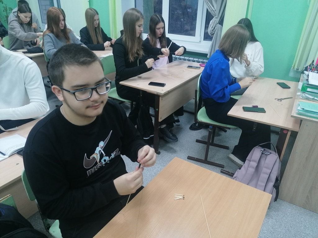 Ученики 11 класса МОУ "СОШ им.Г.И.Марчука р.п. Духовницкое" совместно с классным руководителем Марковой В. С. изготавливают спички длительного горения для участников СВО.