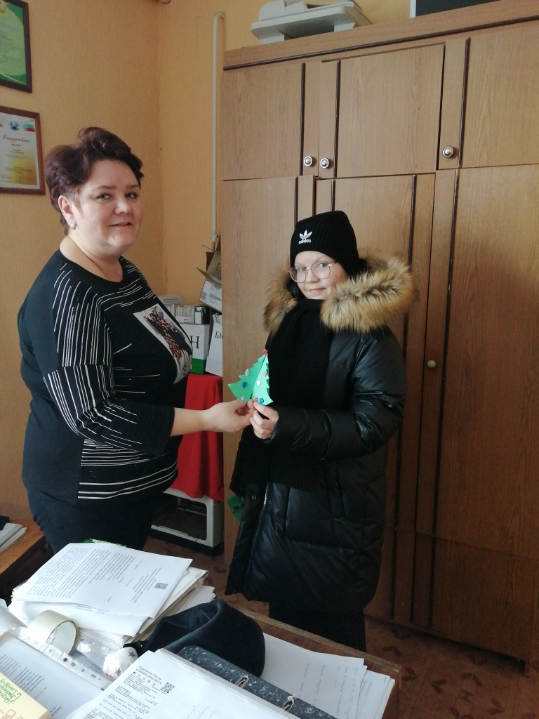 Учащиеся 5Г класса поздравили продавцов, работников администрации и сельского Дома культуры с наступающими праздниками и подарили открытки, сделанные своими руками.
