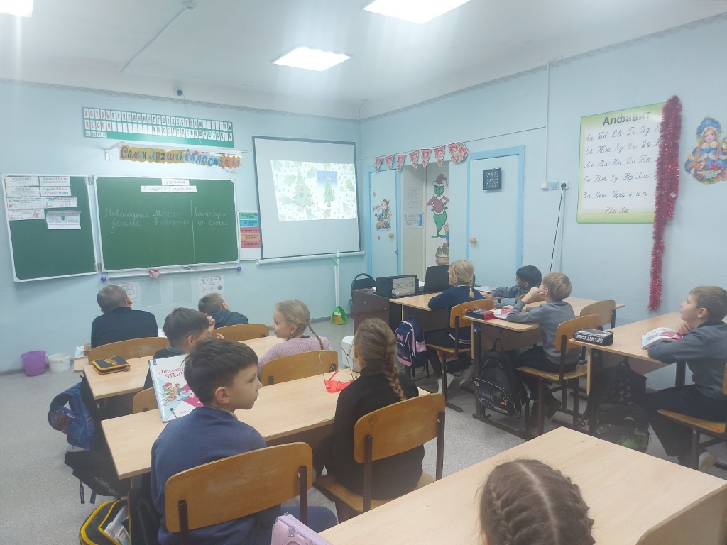 В преддверии Нового года для учащихся 2 А класса (кл.руководитель Конькова А.А.) школьный библиотекарь Верховцева Л.В. провела викторину «Здравствуй, Новый год». Путешествие включило в себя несколько разделов связанных с новогодними праздниками. Вспоминали мультфильмы, песни, отвечали на вопросы и отгадывали загадки.