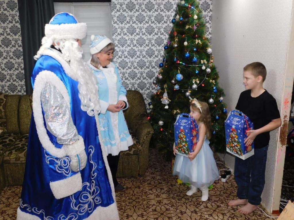 Вместе с Дедом Морозом и Снегурочкой вручили ребятам сладкие подарки.