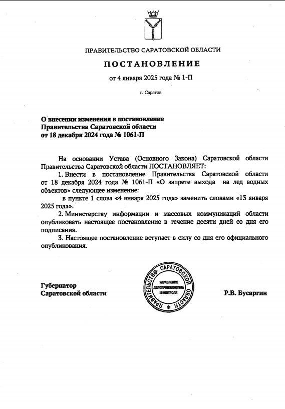 Запрет выхода на лед на Волге в Саратовской области продлен до 13 января включительно.