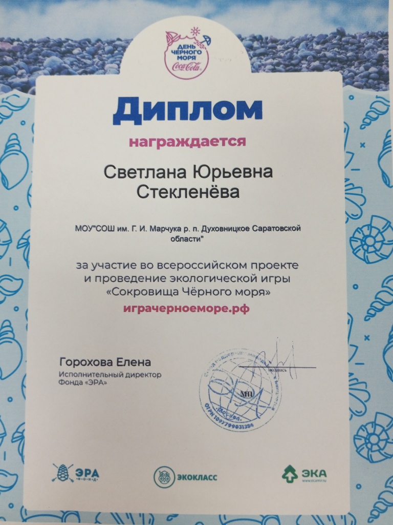 Обучающиеся 7б класса МОУ "СОШ им.Г.И.Марчука р.п.Духовницкое" под руководством учителя географии и биологии Стекленёвой С.Ю. кружка "Практическая биология" приняли участие во ВСЕРОССИЙСКОМ ПРОЕКТЕ - экологической игре «Сокровища Черного моря».