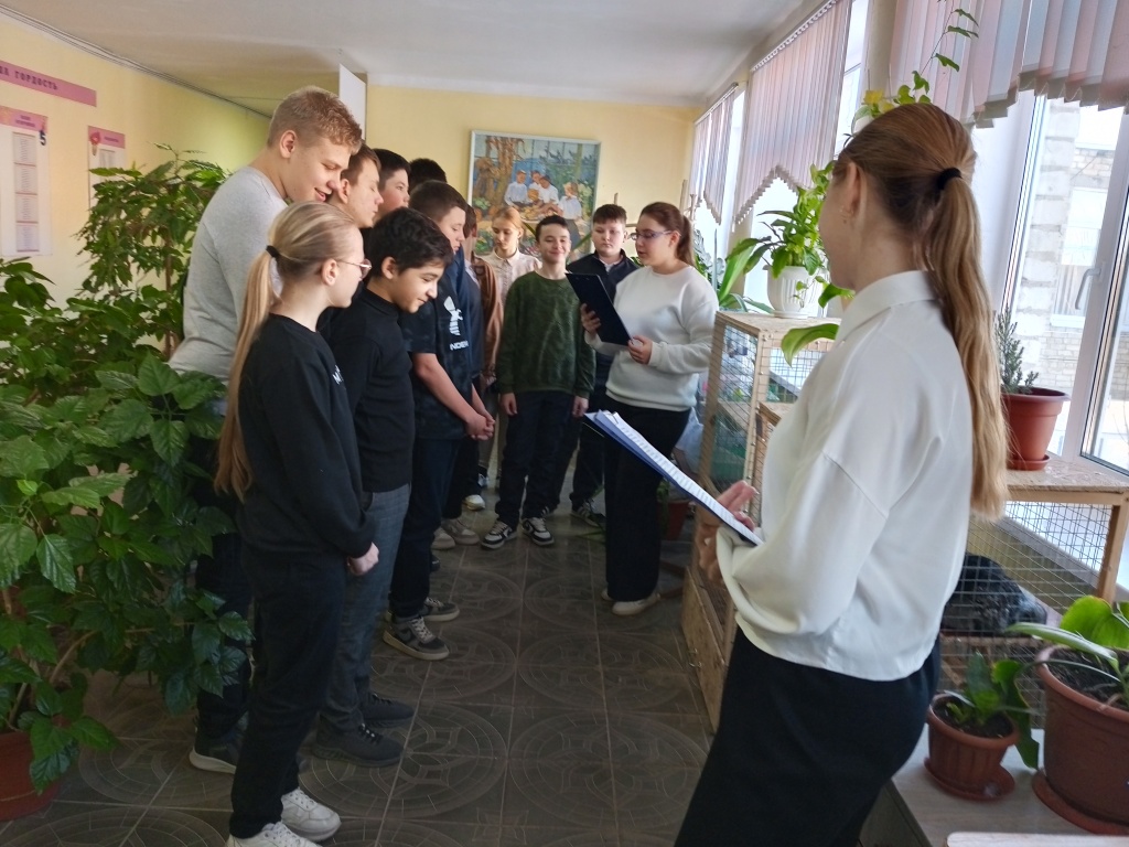 Экскурсоводы кружка "Практическая биология": Кожевникова Ангелина и Туртаева Дарья ЦО "Точка роста" (руководитель кружка: Стекленёва С. Ю.) рассказали ребятам о оранжерее и её обитателях. Экскурсия помогла ребятам познакомиться с растительным и животным миром школьного уголка природы. Ребята узнали, что живой уголок — это определенное место, где животным и растениям созданы условия для жизни.